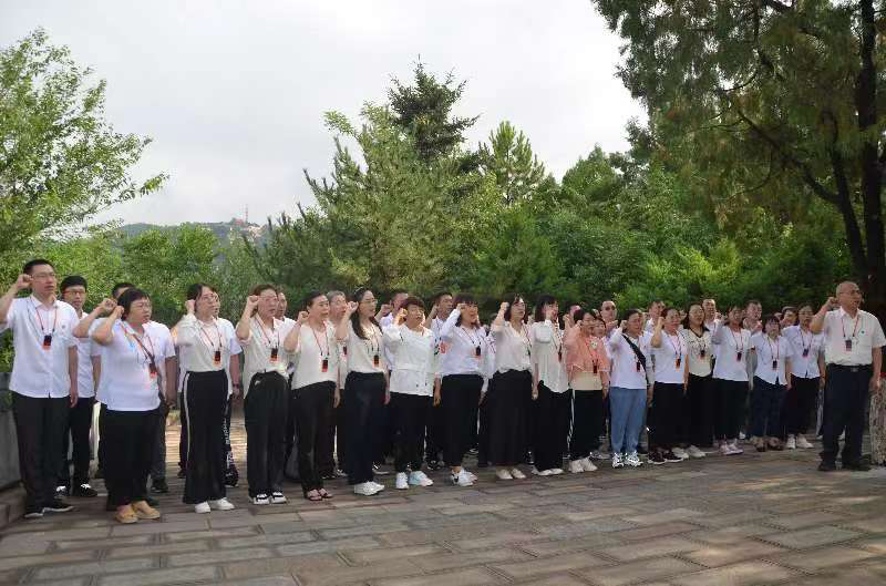 “巍巍宝塔山,滚滚延河水”。宝塔山是革命圣地延安的重要标志和象征,傲然耸立的巍巍宝塔,像一把火炬照亮了中国革命的航程。站在延安精神的象征地宝塔山,俯瞰全城,感受革命圣地的壮美,感悟党“革命理想高于天”的崇高信仰。在宝塔山上,举行了“重温入党誓词,不忘入党初心”活动,全体党员庄重地举起右拳,用饱满的热情、有力的声音,重温入党誓词,激励大家坚定理想信念、赓续红色血脉,践行初心使命。在宝塔下开展了激情党课教学《宝塔山连着天安门》,大家现场朗诵著名诗人贺敬之先生的《回延安》,合唱高亢激昂的《黄河大合唱》,深深地感受到宝塔山连着天安门的那种心潮澎湃,一心向党的团结力量与为国为民的家国情怀,体会延安精神的精髓。
