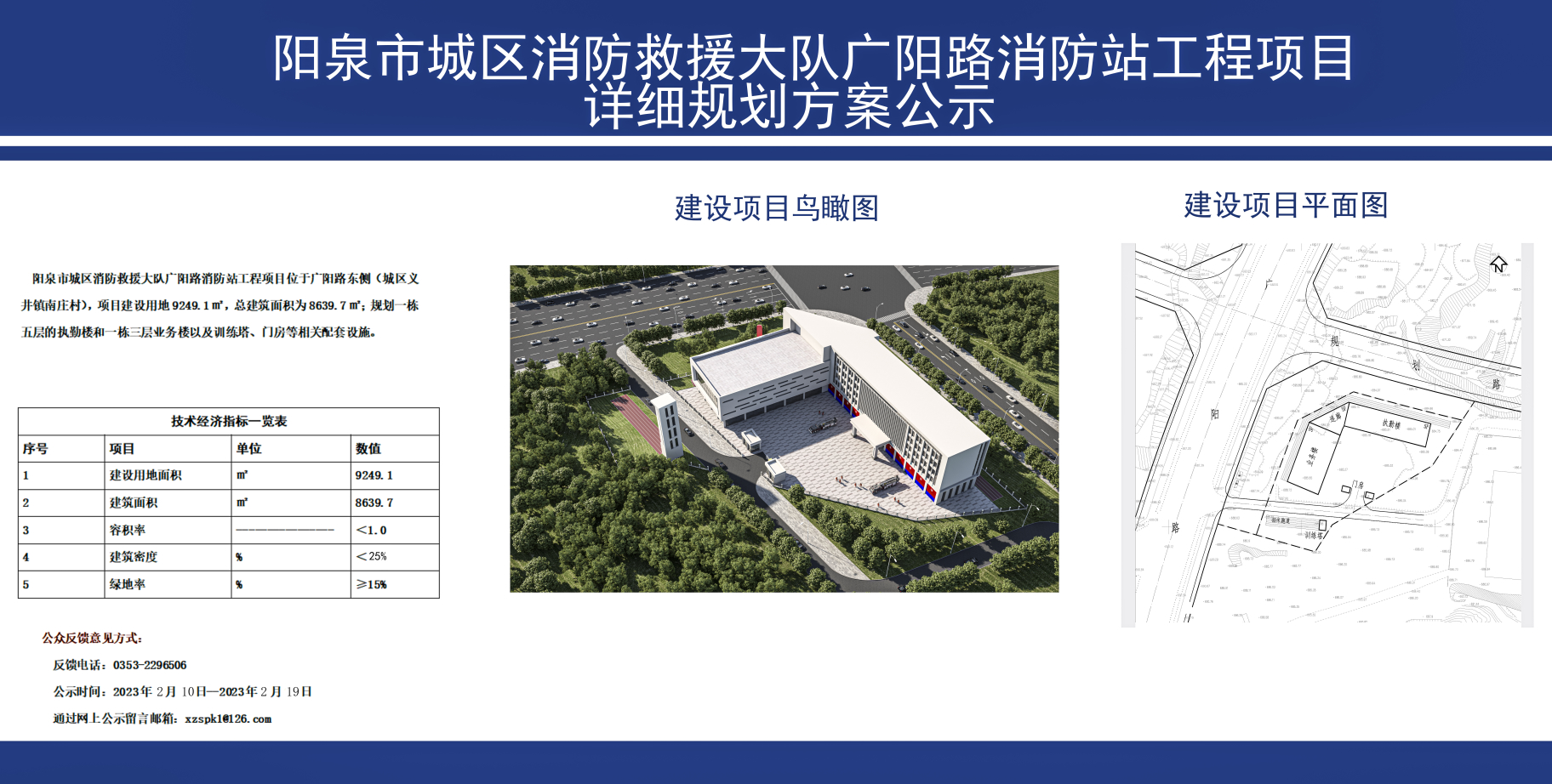 阳泉市城区消防救援大队广阳路消防站工程项目详细规划方案公示