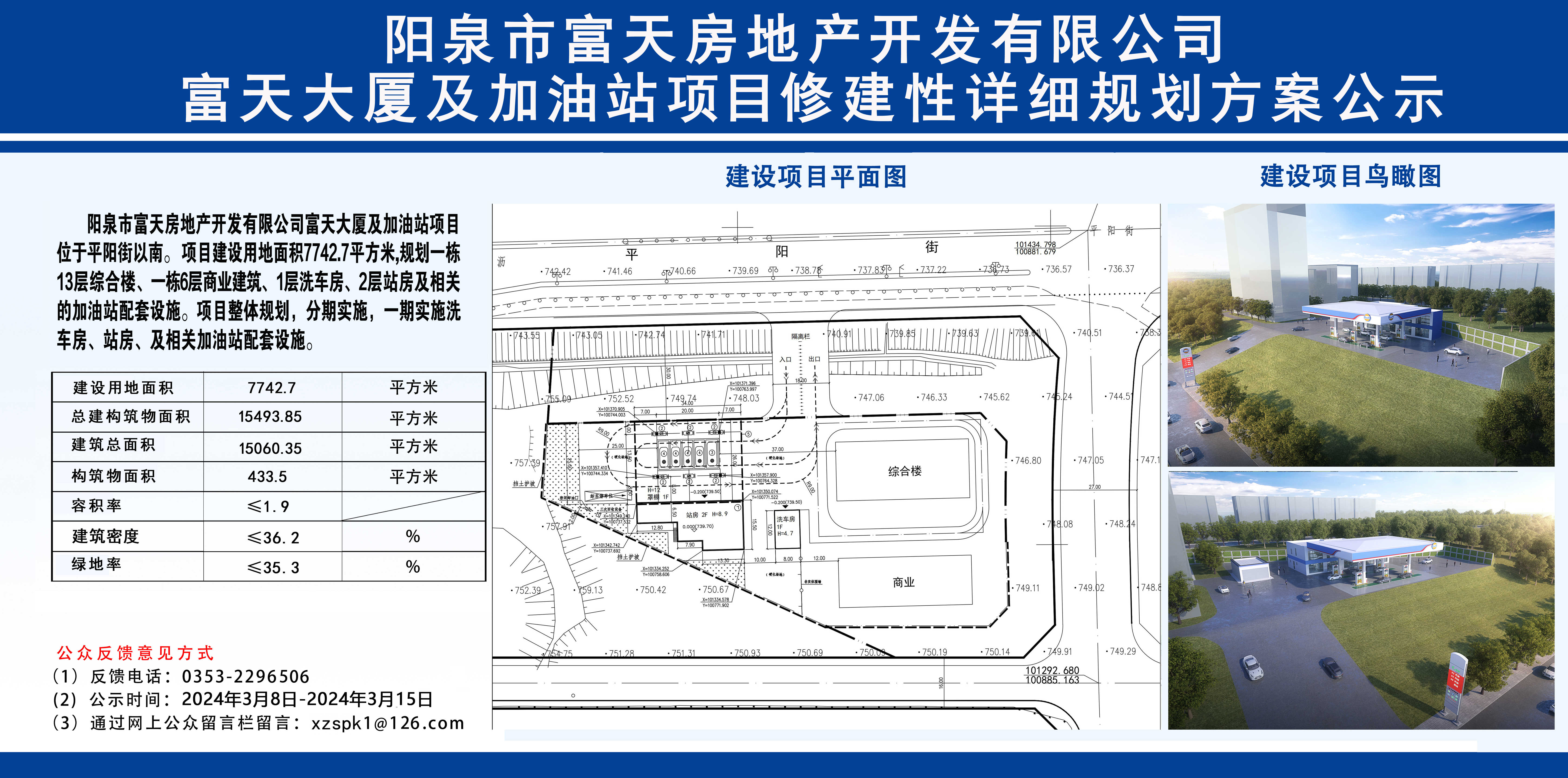 阳泉市富天房地产开发有限公司富天大厦及加油站项目修建性详细规划方案公示