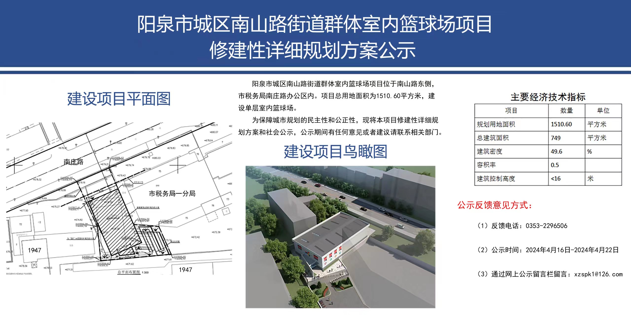 阳泉市城区南山路街道群体室内篮球场项目修建性详细规划方案公示