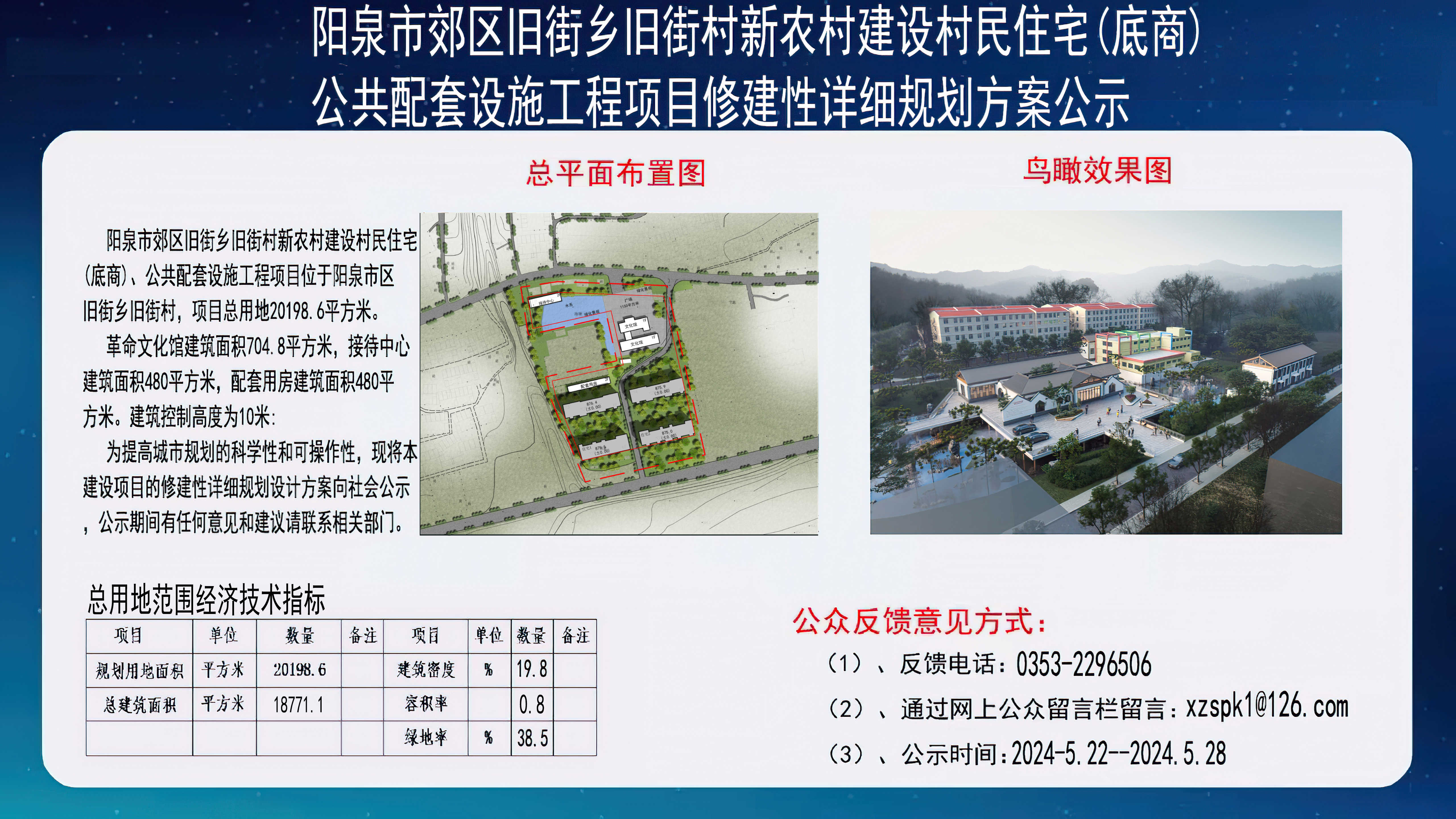 阳泉市郊区旧街乡旧街村新农村建设村民住宅(底商)公共配套设施工程项目修建性详细规划方案公示