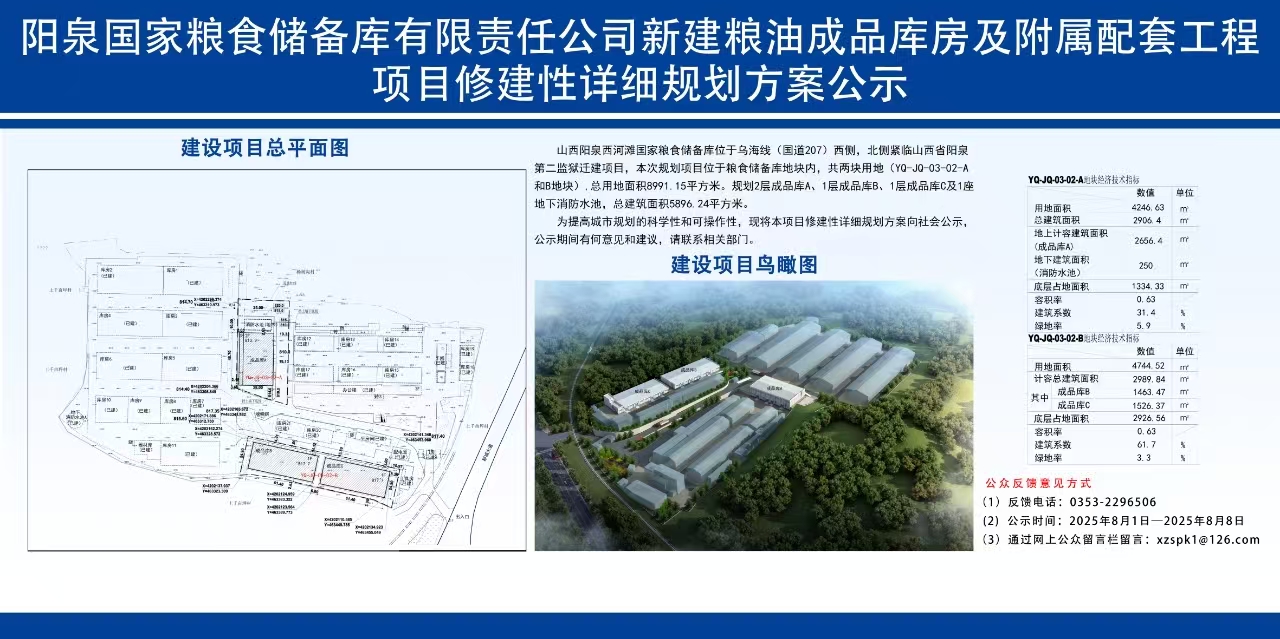 阳泉国家粮食储备库有限责任公司新建粮油成品库房及附属配套工程项目修建性详细规划方案公示