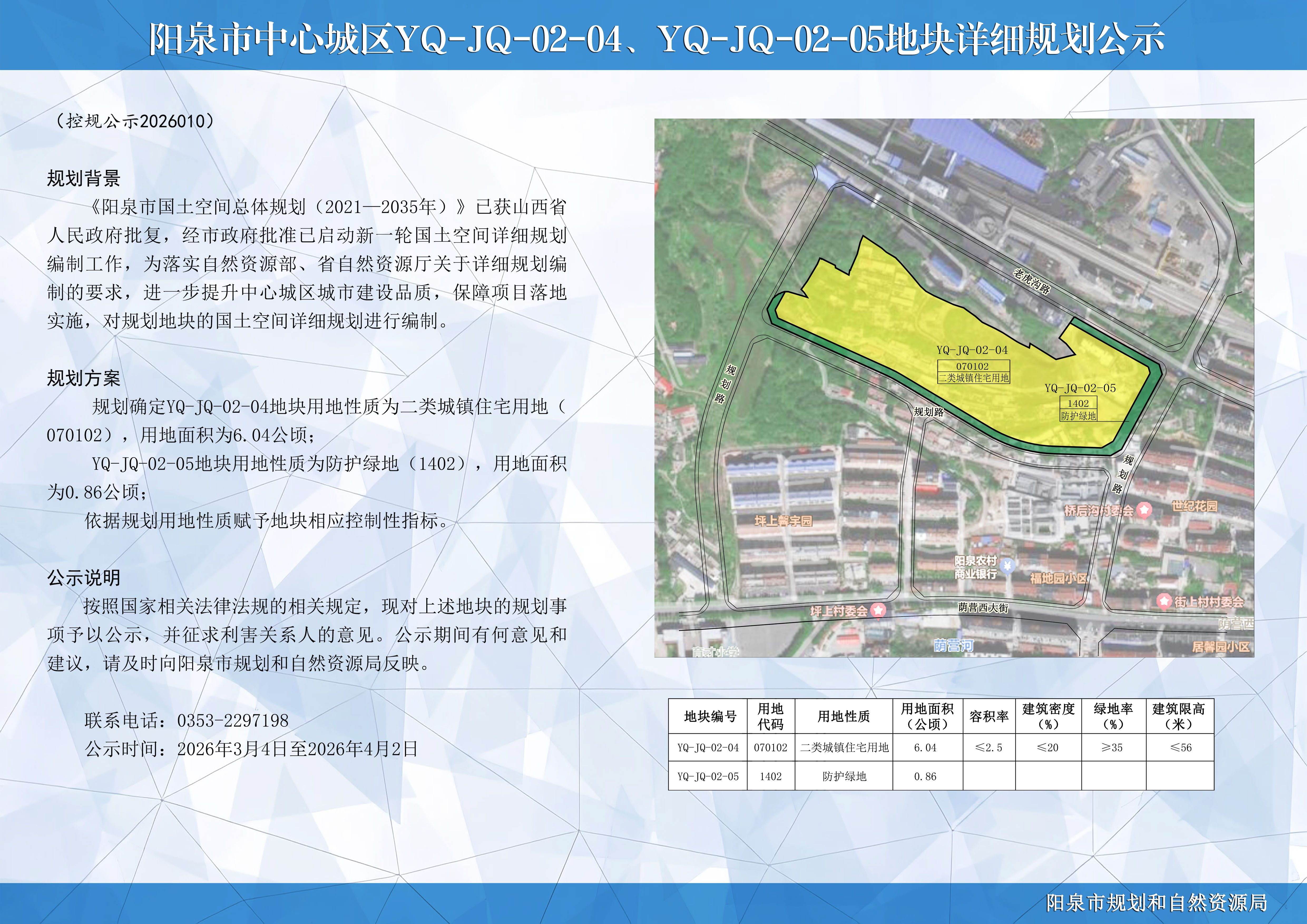阳泉市中心城区YQ-JQ-02-04、YQ-JQ-02-05地块详细规划公示