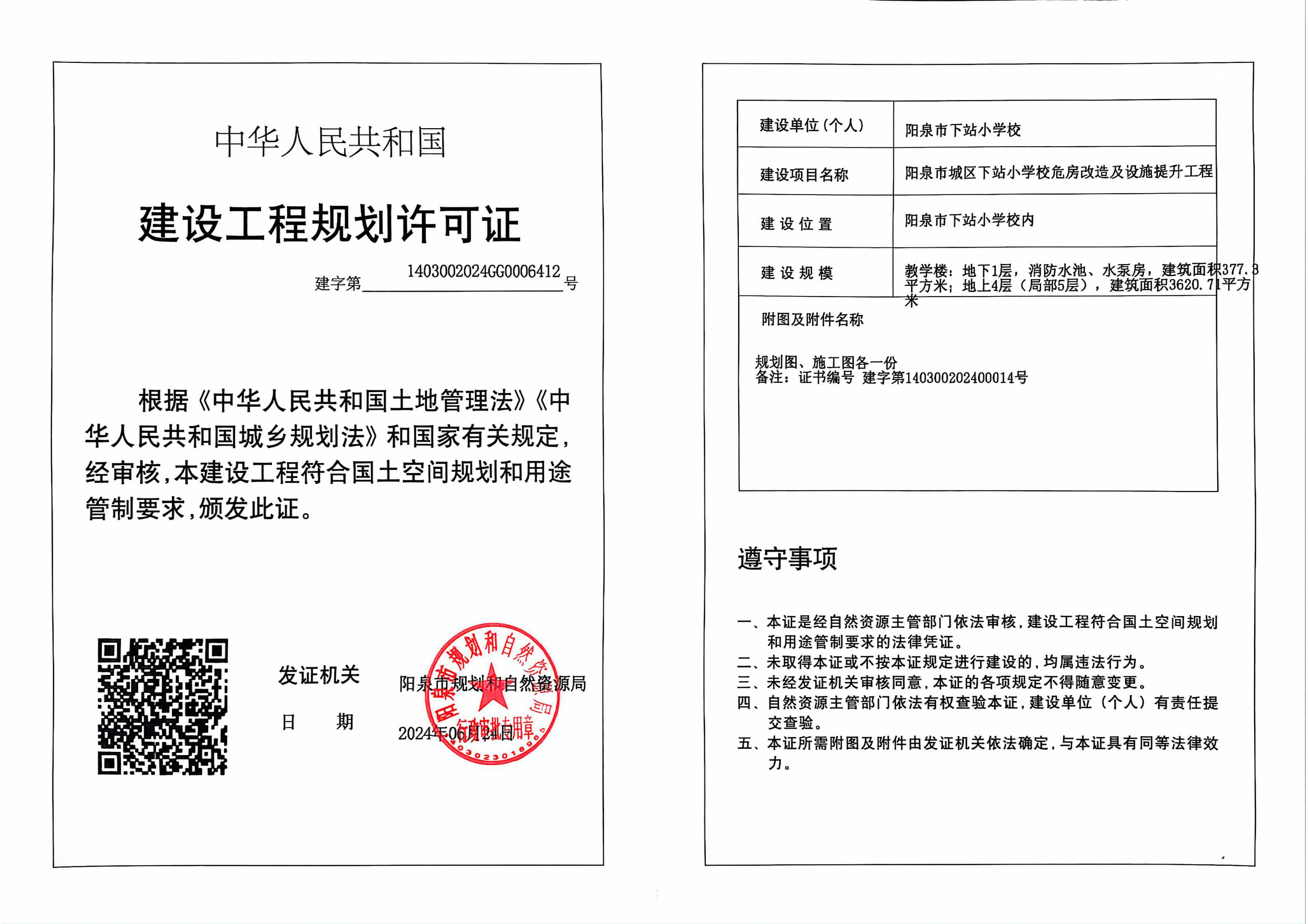 阳泉市城区下站小学校危房改造及设施提升工程建设工程规划许可证