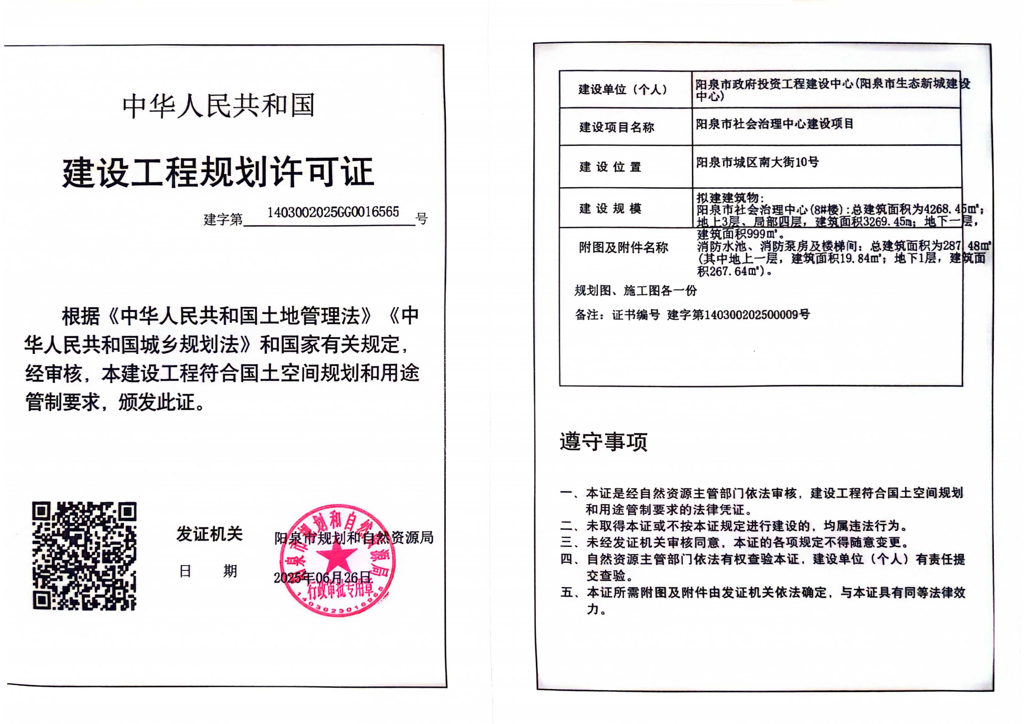 阳泉市社会治理中心建设项目建设工程规划许可证