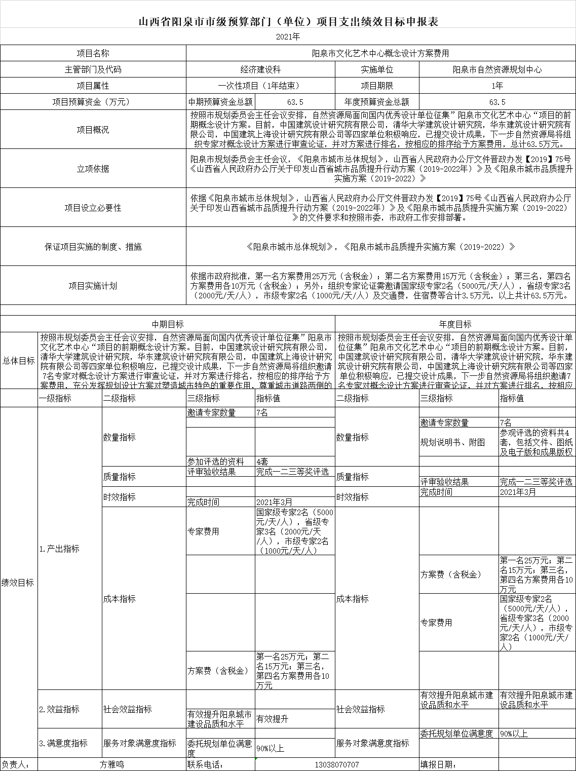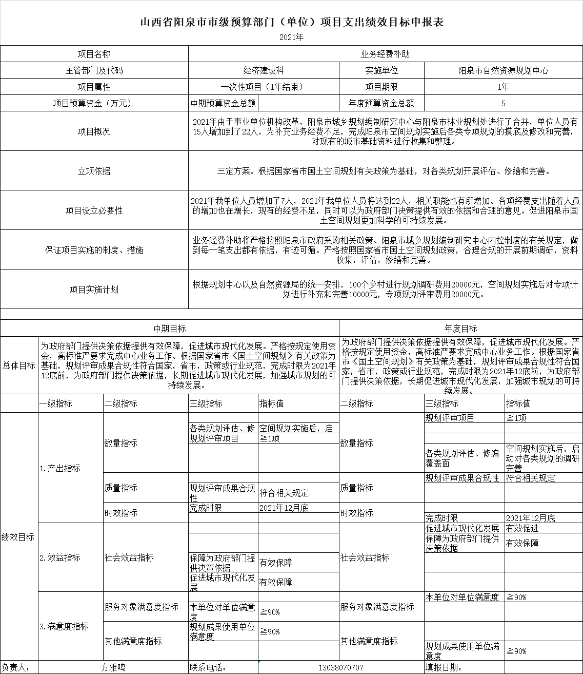 四、2021年阳泉市自然资源规划中心预算信息公开表