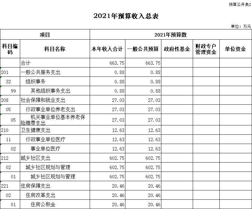 2021年收入预算663.75万元,比2020年增加168.97万元,增长25.46%,主要原因是单位合并后增加了人员和增加了新项目。