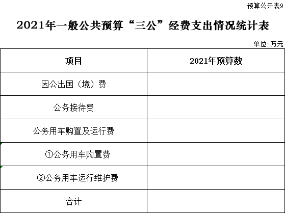 2021年一般公共预算安排的“三公”经费预算0万元,比2020年减少0.05万元,主要原因为去年未使用。其中:因公出国(境)费用0万元,比2020年增加(减少)0万元;公务接待费0万元,比2020年减少0.05万元,主要原因是去年未使用;公务用车运行维护费0万元,比2020年增加(减少)0万元,公务用车购置费0万元,比2020年增加(减少)0万元。