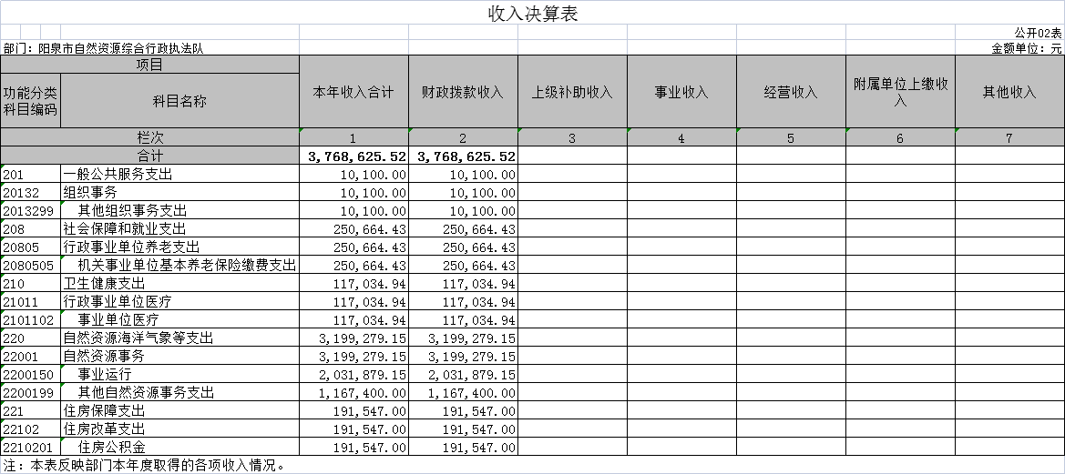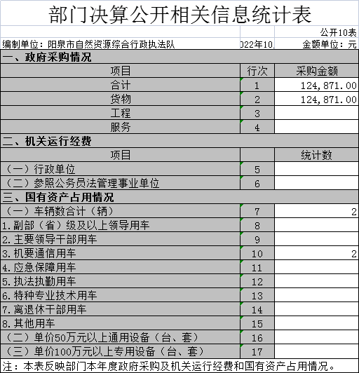 阳泉市自然资源综合行政执法队 2021年度部门决算信息公开