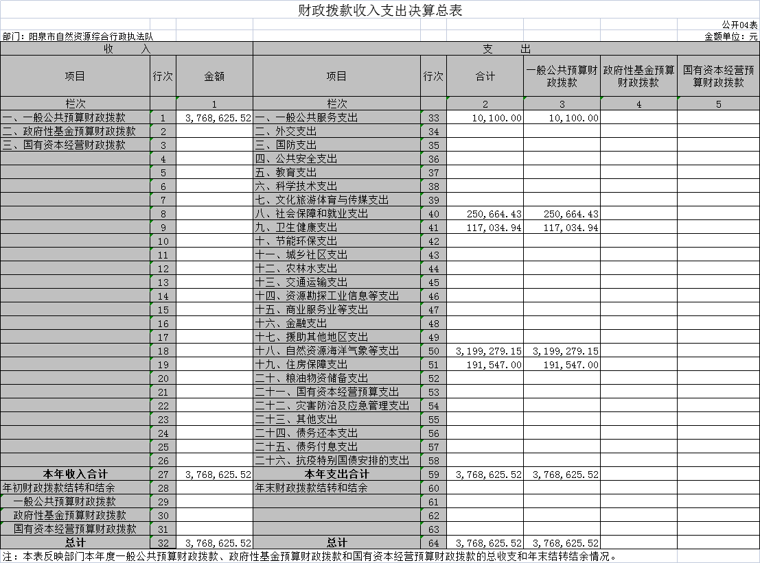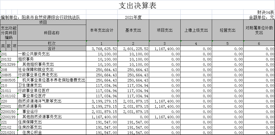 附件:阳泉市自然资源综合行政执法队2021年部门决算公开报表